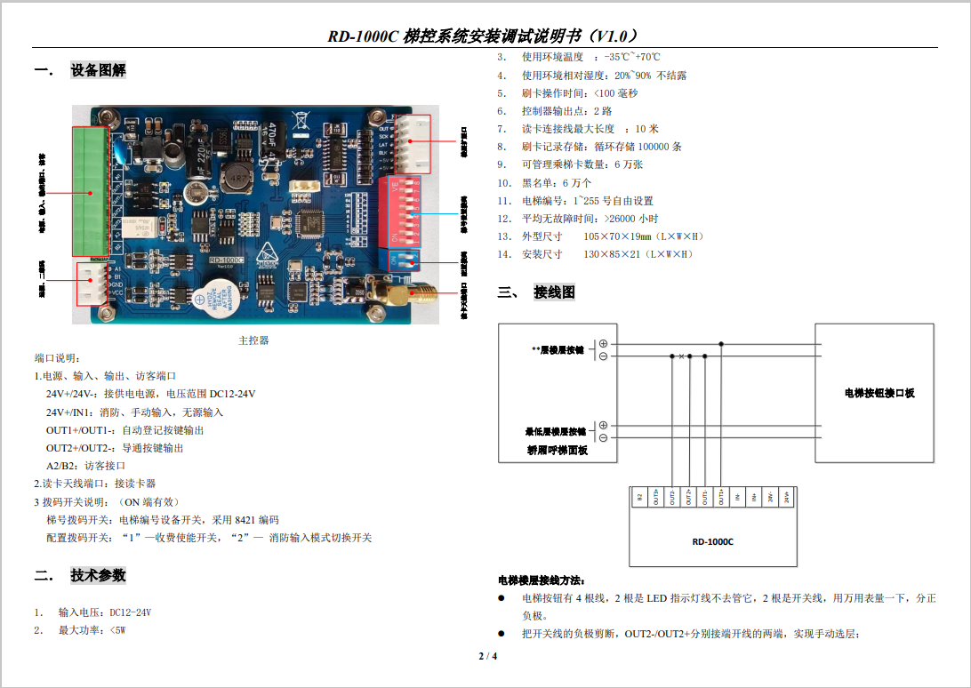RD-2000A 梯控系統安裝調試說明書(V1.1)
